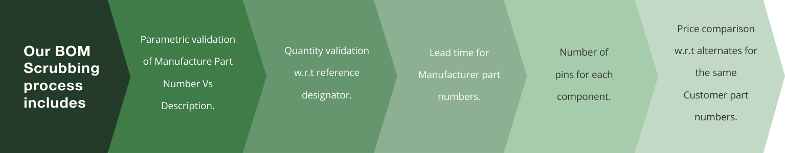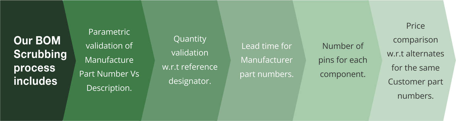 Senjatec acts as a customer interface for Component Engineering services. Error free BOM's play crucial role in building a product in smooth manner which requires additional effort for components validating & corrected if required. Once BOM loaded into ERP, multiple internal organisations work parallally on same activities like purchase, product engineer, Sourcing & quality teams etc, for a product to build. Senjatec provides BOM Scrubbing services in an effective manner in the standard template format.